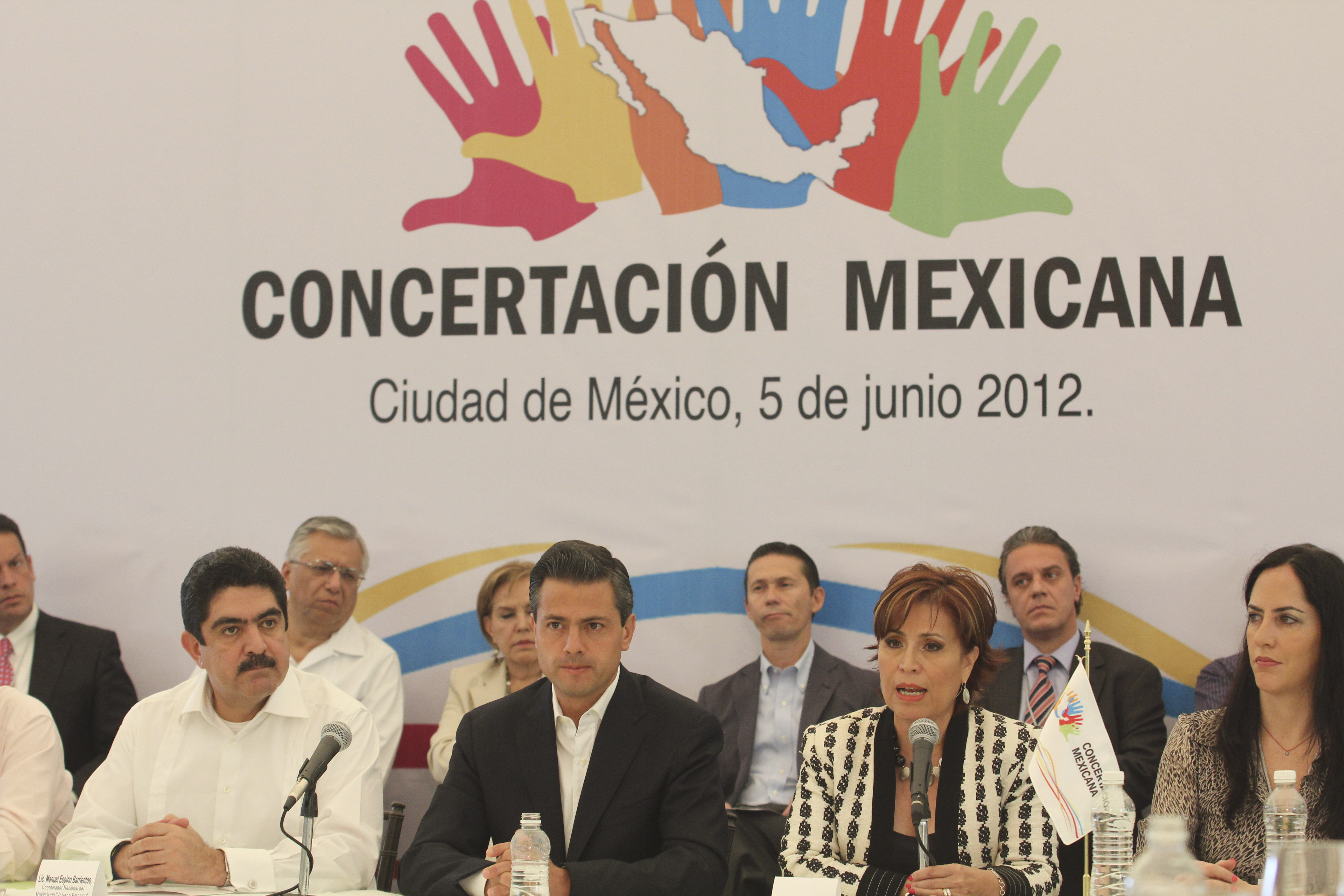 El candidato presidencial de los partidos PRI-PVEM, Enrique Peña Nieto, firmó hoy el Plan de Concertación Mexicana, en el cual se refleja el apoyo que le otorgan ex miembros del PAN y el PRD.