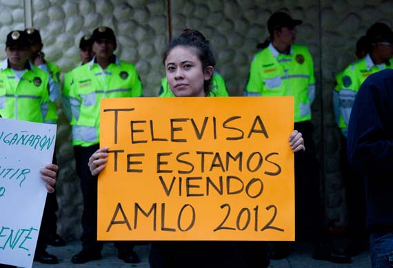 López Obrador dijo que Milenio, Televisa y El Universal son simpatizantes de Peña Nieto. Marín soltó una carcajada. López Dóriga le reclamó que dijera que se dedicó todo el Noticiero al tema del pase de charola.