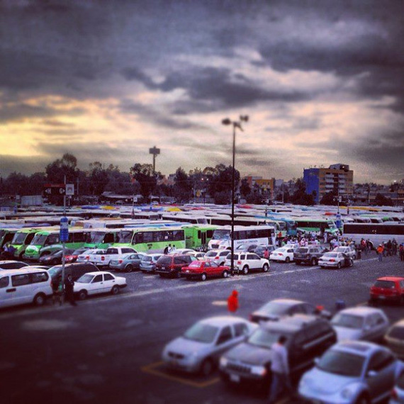 Reforma expone que hasta as 18:30 horas había unos 100 autobuses con acarreados del PRI en el estacionamiento del Estado Azteca.