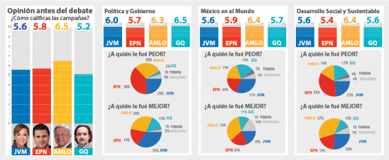 La casa encuestadora de María de las Heras publicó los primeros resultados sobre el segundo debate presidencial entre los candidatos presidenciales realizado este día en Guadalajara, Jalisco.