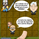 La dinámica consiste en arrastrar los objetos en el campo y recoger tres o más iguales para obtener uno nuevo, evitando meterse en problemas con narcotraficantes o acumular demasiadas figuras de Elba Esther Gordillo.