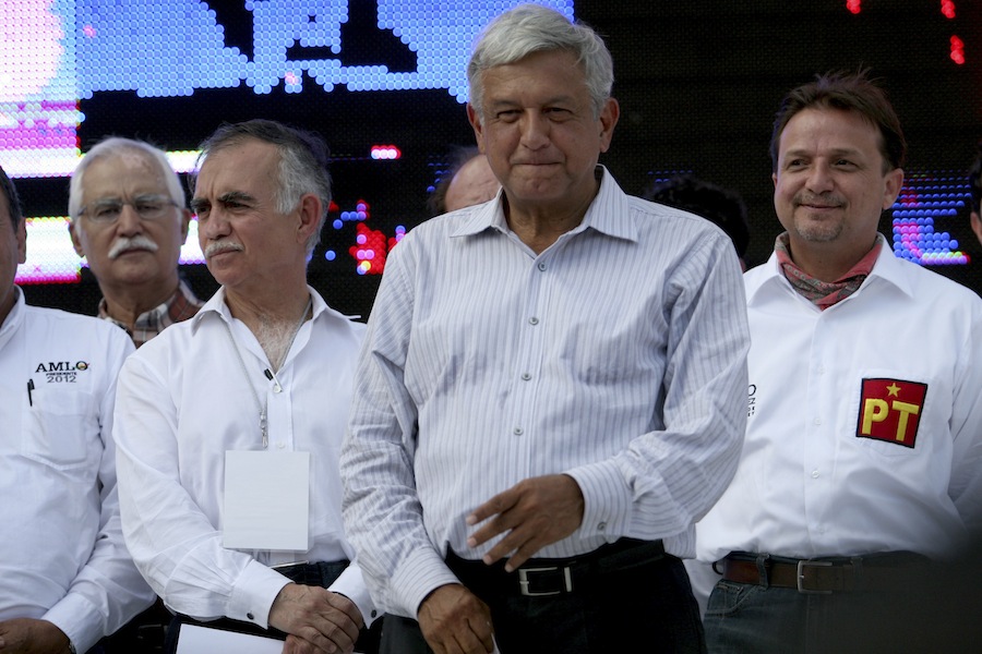 Junto a la candidata a senadora Cristina Sada Salinas; el senador y coordinador nacional del PT, Alberto Anaya; el dirigente del PRD, Jesús Zambrano, y los empresarios Alejandro Gurza y Armando Guadiana, quienes al final levantaron el brazo al tabasqueño en señal de triunfo, el candidato del Movimiento Progresista rechazó el aumento de impuestos o el endeudamiento del país, el cual se equipara a 36% del producto interno bruto (PIB).