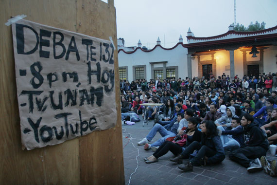 Con el debate #Yosoy132 he descubierto que este movimiento tiene al menos dos caras o dos vertientes posibles o visibles. Una es la que vi en la marcha del 9 de junio y la otra es la que se presentó en el debate. No estoy hablando de hipocresía, sino en cuanto a sus dinámicas y posibilidades de organización. Una marcha multitudinaria incluso dentro un estado autoritario con un notable aparato represor, es imposible de controlar y acotar completamente. Aquél día lo que percibí con mayor persistencia fue un odio entre rabioso y lúdico hacia la candidatura de EPN, el PRI y Televisa. Si bien la naturaleza y el mensaje era de abierto rechazo y con escasa o nula capacidad de proposición, había también diseminadas algunas muestras de apoyo al candidato de la izquierda, Andrés Manuel López Obrador. Aunado a esto estaba involucrado y marchando con el colectivo del Sindicato Mexicano de Trabajadores Electricistas (SME), o sea que a mi manera de ver, la marcha globalmente tenía un marcado tufo pro-AMLO. Como ya dije, no creo que de esto pudiera hacerse responsable al movimiento #YoSoy132 que poco o nulo control tendría sobre los asistentes.