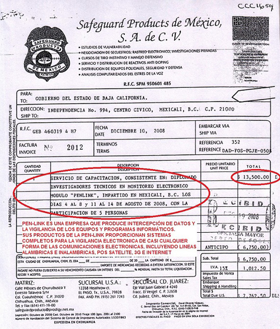 En la fiscalización, dijo, se encontraron una serie de facturas expedidas por la empresa “Safeguard Products of México”, en la cual se detallan adquisiciones y pago de servicios que el proveedor proporcionó al gobierno de Baja California para la intervención de líneas telefónicas.