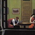 Bien podría ser una misma esa voluptuosa mujer que se vuelve a la espera de que el oficinista se fije en sus curvas en Oficina de noche (1940), o esa otra pulsando una tecla del piano mientras su marido lee el periódico haciéndole caso omiso en Habitación en Nueva York (1932). Pero los personajes de Hopper son personajes desconocidos, de rasgos poco definidos, con nombre y apellidos propios, sí, pero, como afirma Carlos Marzal “personajes de paso, al fin y al cabo, de paso por esas estancias, de paso por la ciudad, de paso por el mundo, de paso por sus vidas, camino quién sabe dónde”. ¡Cómo vamos a reconocerlos del todo!