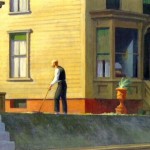 “Tan importante es en la pintura de Hopper la condición acústica, la naturaleza musical de lo pintado, que el eco mayor de muchas de sus telas es el del silencio” señala Marzal. Y es que el espectador atina a escuchar aquellos sonidos que entran por la ventana de Sol de la mañana (1952), pero es el bullicio de una ciudad moderna que está llena de ausencias, de no-acción, de quietud: una ciudad deprimida que, pese a la concisión y alta definición de sus escenas, pese a la estudiada composición espacial de las mismas y a su carácter cinematográfico, no muestra intención documental alguna.