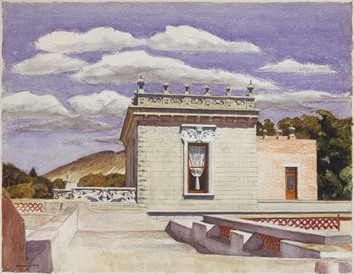 Y yo que lo veo, y yo que lo compruebo, y yo que me veo reflejada en la difusa silueta de esa mujer que asoma por una de las ventanas de Casa al anochecer (1935), y que de pronto advierto a vista de pájaro en vuelo. De ave expiatoria que sobrevuela esa casa neoyorquina con la suerte de vivir el feliz momento de atisbar por un instante lo que acontece dentro de la misma, cuando la luz del sol se apaga y la de los fluorescentes se enciende, cuando la vida exterior comienza a dar paso a la verdadera vida.
