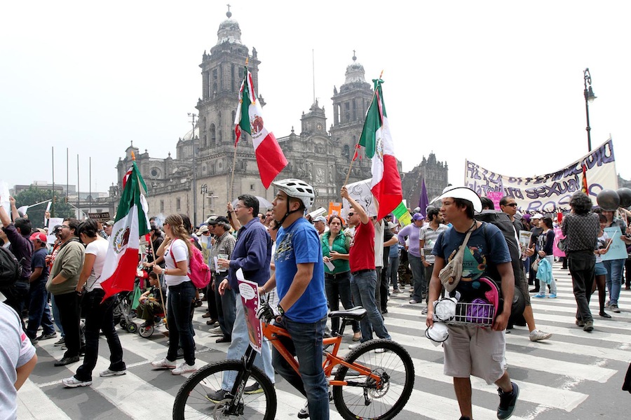 A lo largo del Paseo de la Reforma, donde tradicionalmente se realiza el ciclotón dominical, la marcha ocupó los dos carriles hasta abarrotar la glorieta del Ángel de la Independencia. El llamado más fuerte fue a vigilar las elecciones del próximo 1 de julio y a evitar el fraude.