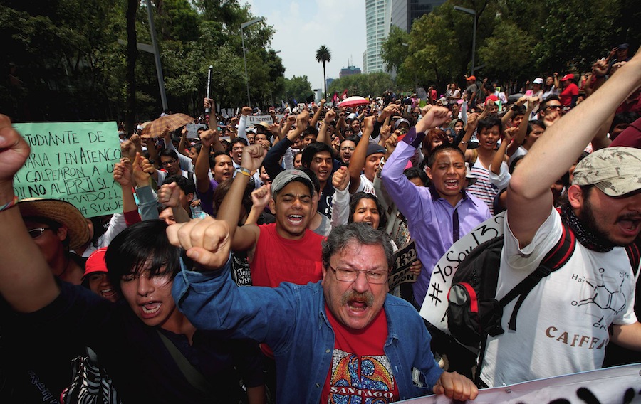 Con miles de pancartas y mantas en contra del candidato del PRI, los contingentes avanzaban con el grito “¡el que no brinque es Peña!” o “Peña, entiende, el pueblo no te quiere”.