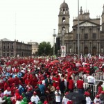 En el mitin participaron miles de personas que se congregaron en la plaza central de Toluca, capital del estado que Peña Nieto gobernó del 2005 al 2011 y que fue su cuna política.