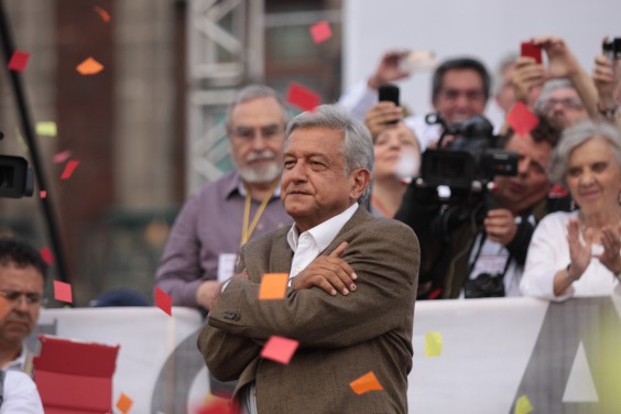 Lento, pausado, al estilo pejiano, López Obrador inicia su discurso mencionando a los dirigentes que lo acompañan. Agradece a Marcelo Ebrard, el jefe de gobierno capitalino saliente, su apoyo al declinar en la contienda y aceptar ser su futuro secretario de Gobernación. Agradece a Cuauhtémoc Cárdenas, el tres veces candidato presidencial, que se sumó a la marcha en Reforma, pero ya no subió al templete.