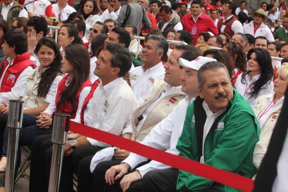 No hace falta mayor suspicacia para darse cuenta que los dos mil primeros asientos en torno al templete son destinados a la mediana y alta burocracia mexiquenses. Ahí están los jefes de unidad, los directores de área, los subsecretarios y no pocos secretarios del gobierno de Eruviel Avila. En los cerca de 20 mil asientos traseros se acomodan los contingentes municipales, el Club de Fans de Peña Nieto, los integrantes de la CROM, los jóvenes del FJR, los campesinos de la CTC; indígenas y gente muy humilde hasta atrás, “trasladados” en decenas de camiones que rodean el centro de Toluca.