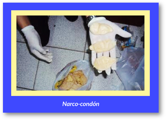 Está práctica no es exclusiva de México, y se conocen numerosos casos en Europa y Sudamérica. Los condones son utilizados principalmente para transportar cocaína o heroína, éstos son llenados de estupefacientes y tragados por una persona denominada "mula", la cual tiene que defecar el cargamento una vez pasado el filtro de las autoridades.