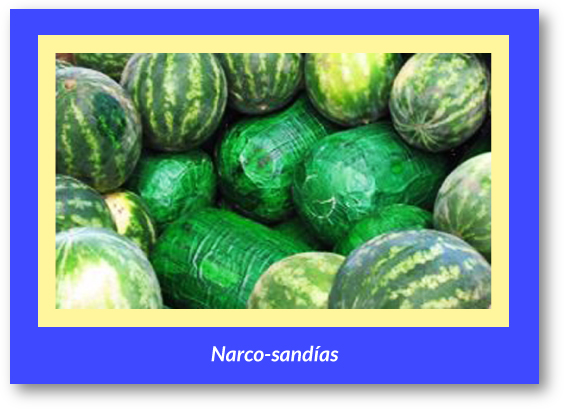 Sin embargo, no basta con esconder la droga. Algunos van más lejos y la camuflan. Tal es el caso de un cargamento de sandías en la garita de Mariposa, frontera de Sonora y Estados Unidos, donde fue detectado un cargamento de 2.3 toneladas de mariguana confeccionado en 647 sandías falsas.
