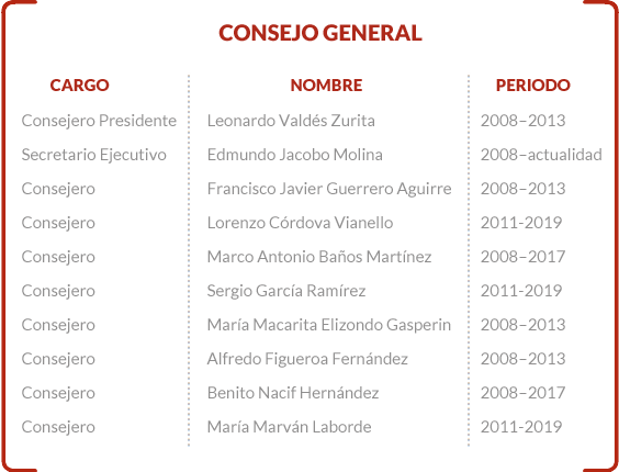 Un año después de las elecciones del 2009, el consejo general del IFE quedó incompleto con la salida de Arturo Sánchez Gutiérrez, Virgilio Andrade Martínez y Marco Antonio Gómez Alcantar. El órgano estuvo a la espera de la nueva terna que conformaría el consejo general. Era el turno de la Cámara de Diputados para postular a los nuevos consejeros.