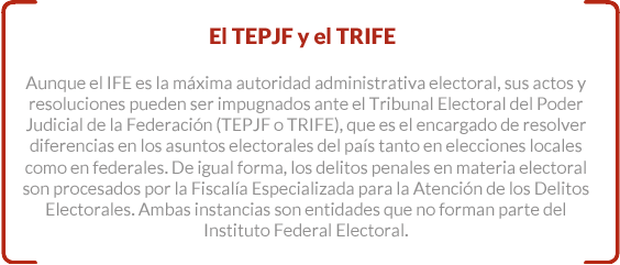 El Instituto Federal Electoral cuenta con órganos en la capital federal, en cada entidad federativa y en cada distrito electoral federal uninominal.
