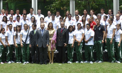 MÉXICO, D.F., 29JUNIO2012.- Felipe Calderón Hinojosa, presidente de México, abanderó en la sede ofical de Los Pinos a la delegación mexicana que pareticipará en los Juegos Olimpicos de Londres 2012.
