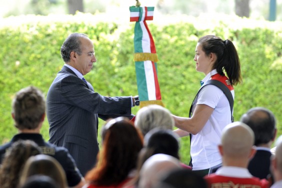 MÉXICO, D.F., 29JUNIO2012.- Felipe Calderón Hinojosa, presidente de México, abanderó en la sede ofical de Los Pinos a la delegación mexicana que pareticipará en los Juegos Olimpicos de Londres 2012.