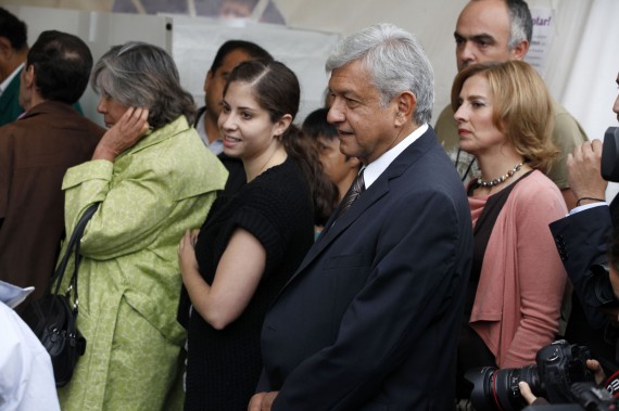 20701057. México, D.F.- El candidato presidencial de la coalición Movimiento Progresista, Andrés Manuel López Obrador, acudió a emitir su voto en la delegación Coyoacán, para la elección de presidente de la República, diputados, senadores y jefe de Gobierno del D.F. VOTO2012/AMLO.