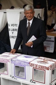 20701059. México, D.F.- El candidato presidencial de la coalición Movimiento Progresista, Andrés Manuel López Obrador, acudió a emitir su voto en la delegación Coyoacán, para la elección de presidente de la República, diputados, senadores y jefe de Gobierno del D.F. VOTO2012/AMLO.