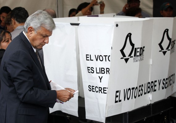 20701060. México, D.F.- El candidato presidencial de la coalición Movimiento Progresista, Andrés Manuel López Obrador, acudió a emitir su voto en la delegación Coyoacán, para la elección de presidente de la República, diputados, senadores y jefe de Gobierno del D.F. VOTO2012/AMLO.