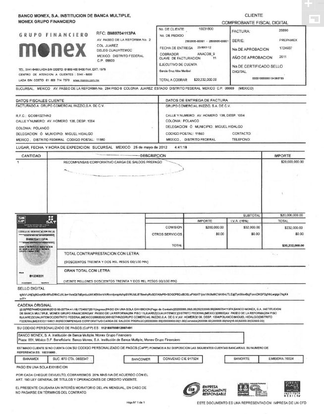 “Está la factura original de Monex que ampara 30 millones. No hay delito perfecto, siempre se deja huella, son dos empresas que generan esto, el grupo comercial Inizzio y el grupo comercial Epfra y son 168 millones de pesos, por eso la compra del voto es inmoral y por eso nosotros estamos luchando por limpiar la elección", agregó.