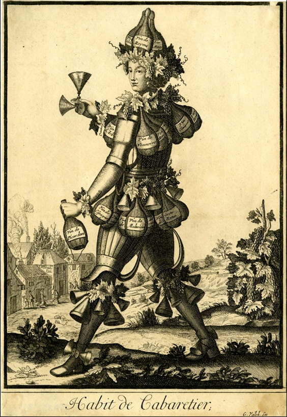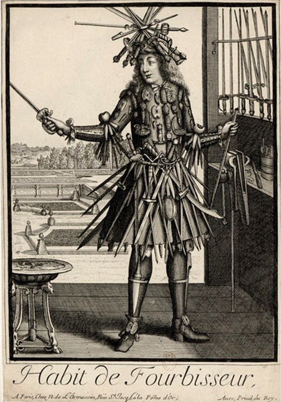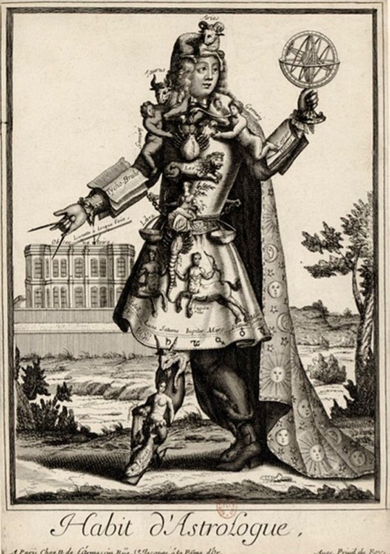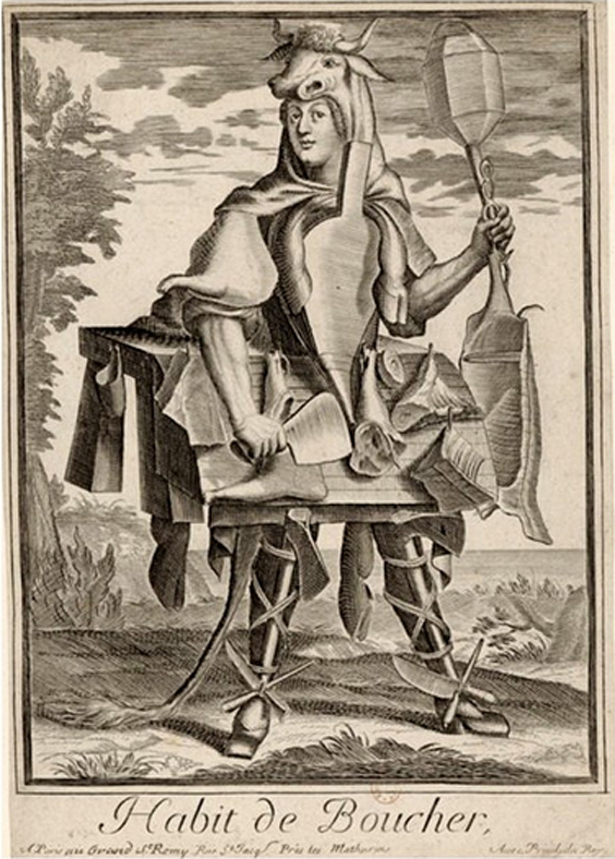 Este ilustrador de los años 1600, representó a un carnicero vistiendo un traje de cuchillos y cabezas de vaca, un boticario adornado con medicinas y un astrólogo en el que se las arregló para colocar todos los signos zodiacales en el traje.