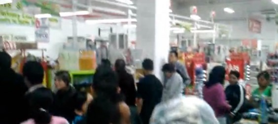 5. Un agente de seguridad le pide a un joven que está grabando el video que deje de hacerlo. El testigo registra como la gente paga en las filas de Soriana, Ixtapaluca con las tarjetas prepagadas del PRI.