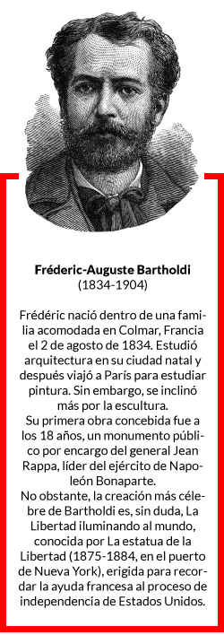Frédéric Auguste Bartholdi, escultor también de origen francés, quien también se encontraba departiendo en la donde se encontraban otros intelectuales que se oponían al régimen opresivo de Napoleón II, propuso como regalo una estatua gigantesca.