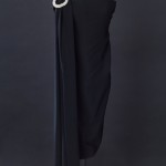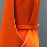 1951. Balenciaga opta de nuevo por la fluidez y huye de las encorsetadas figuras imperantes desde 1947. Siguiendo los principios que guiaron la línea barril, introduce el traje semientallado, caracterizado por su volumen en la espalda que contrasta con el talle ajustado en el frente.