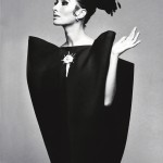 1958. Presenta el vestido baby doll, caracterizado por la sencillez de su silueta trapezoidal que elimina el talle, y los vestidos de cola de pavo real, más largos por detrás que por delante. Abraham crea para el modisto el gazar, un tejido de propiedades escultóricas apto para sus creaciones cada vez más conceptuales. El Gobierno francés le otorga el título de Chevalier de la Légion d’honneur por sus servicios a la industria de la moda. La prensa internacional lo consagra como «el Maestro» y el «Rey de la alta costura».