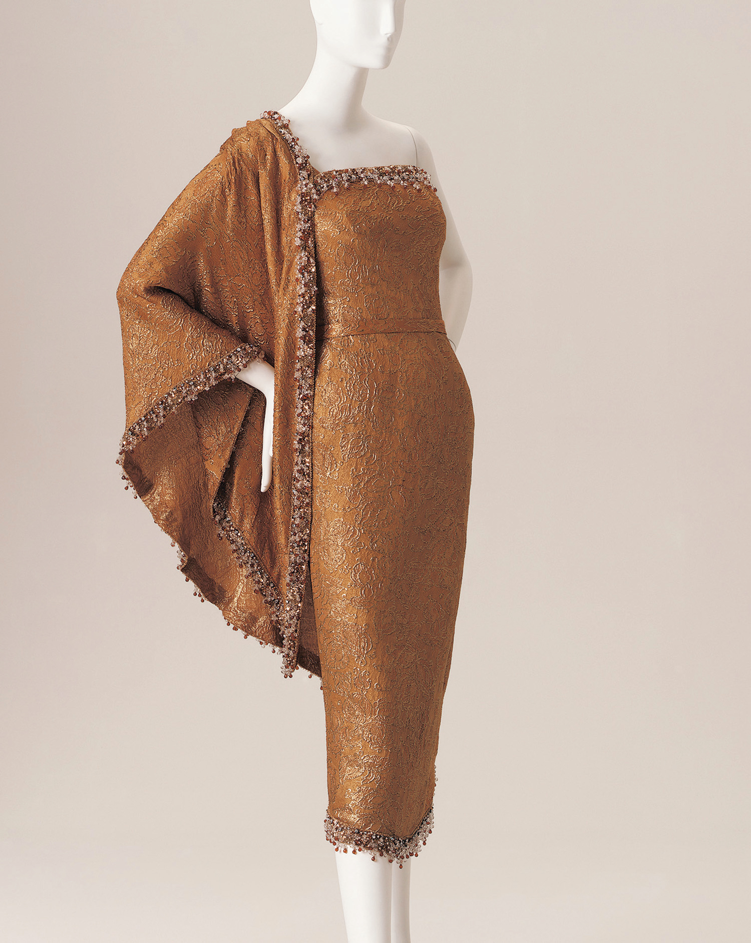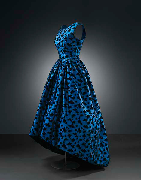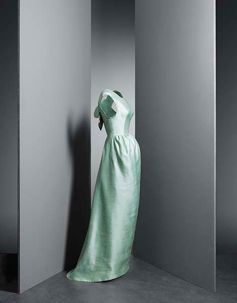 1958. Presenta el vestido baby doll, caracterizado por la sencillez de su silueta trapezoidal que elimina el talle, y los vestidos de cola de pavo real, más largos por detrás que por delante. Abraham crea para el modisto el gazar, un tejido de propiedades escultóricas apto para sus creaciones cada vez más conceptuales. El Gobierno francés le otorga el título de Chevalier de la Légion d’honneur por sus servicios a la industria de la moda. La prensa internacional lo consagra como «el Maestro» y el «Rey de la alta costura».