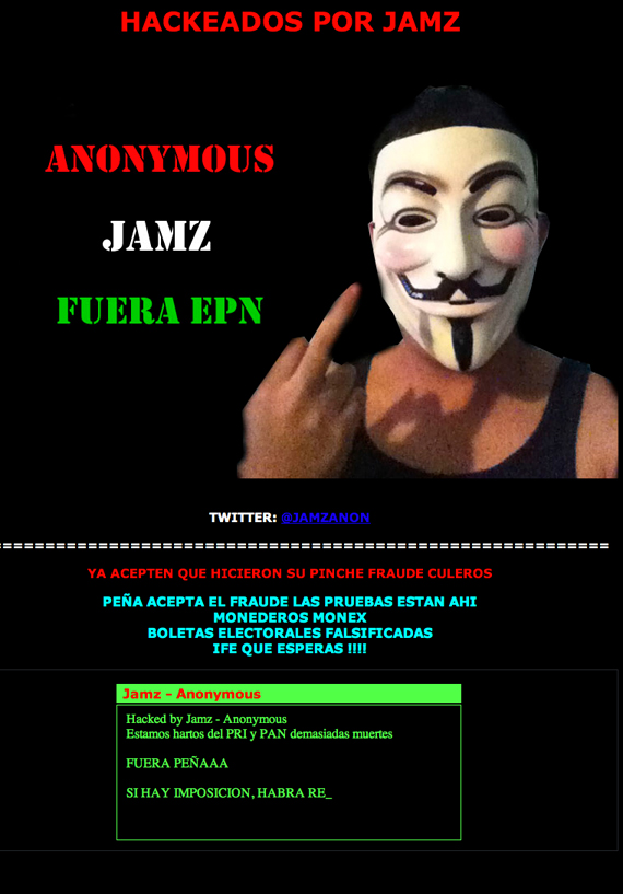 Anonymous ataca página web del PRI en DF; reclama fraude electoral y deja mensaje: “Fuera EPN”