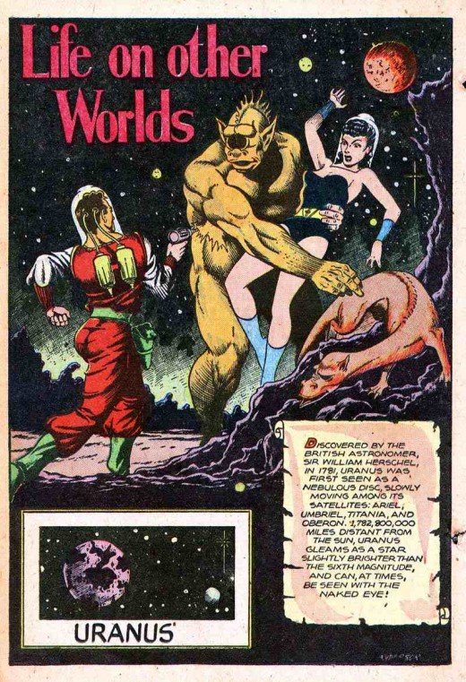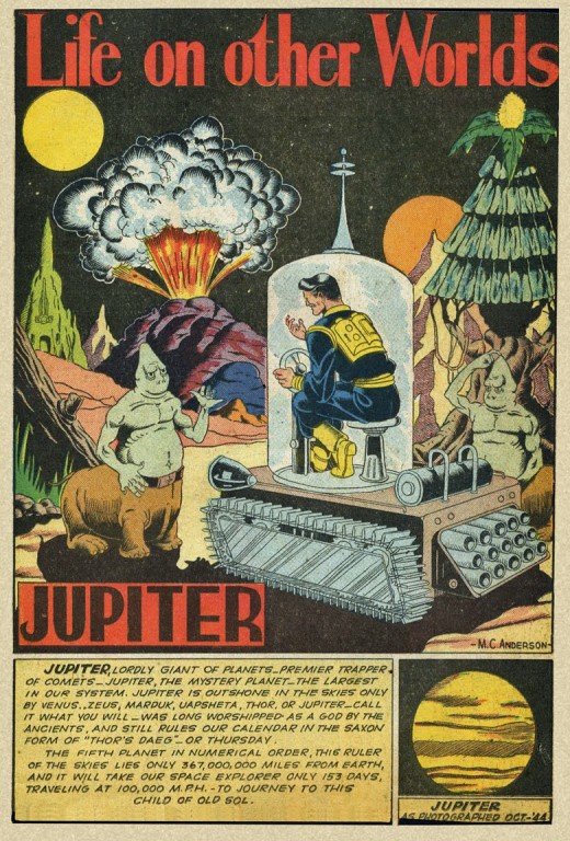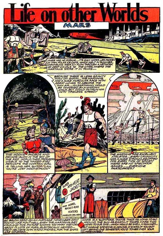 Planet Comics fue una publicación que estuvo a la venta de 1940 a 1953 y en sus páginas aparecían historias de ciencia ficción que hacían las delicias de sus lectores. Una de sus historias más famosas fue "Life On Other Worlds." en donde se mostraba por medio de viñetas la supuesta vida en los planetas del Sistema Solar.
