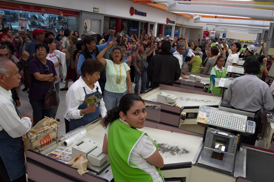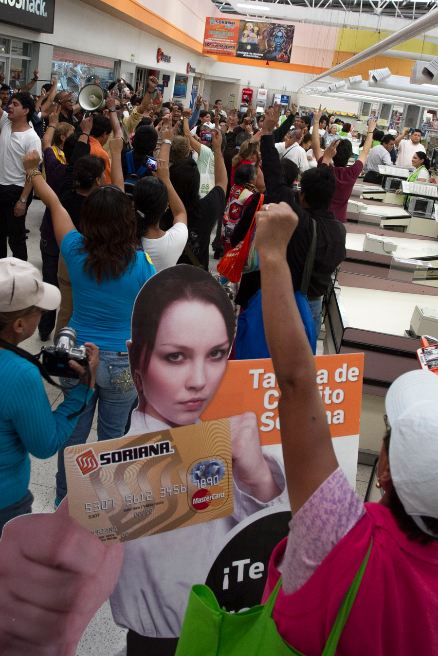 Ayer, cientos de personas protestaron en el interior de varias tiendas de la cadena Soriana tanto en la Ciudad de México como en el interior del país, por el presunto apoyo en la emisión y distribución de tarjetas de descuento –de hasta 500 pesos– para promover el voto a favor del candidato del Partido Revolucionario Institucional (PRI) y virtual ganador de la contienda electoral por la Presidencia de la República, Enrique Peña Nieto.