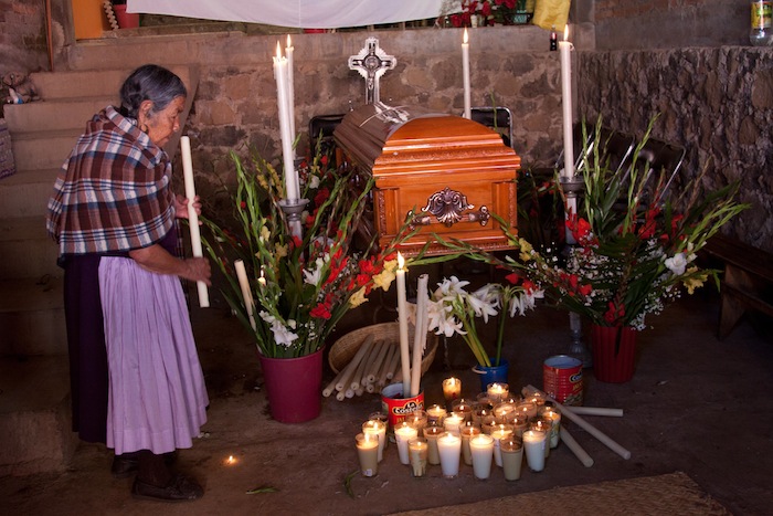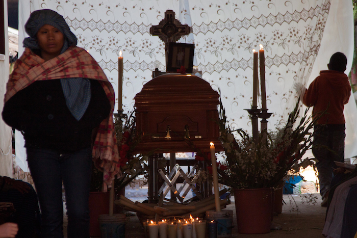 Morelia, 11 Jul.- En un ambiente de tristeza e indignación, los cuerpos de los dos comuneros asesinados son velados en el municipio de Cherán.