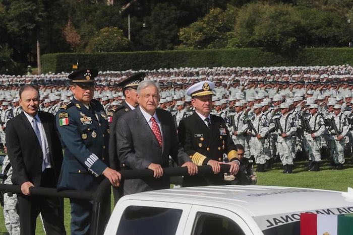 El Jefe del Estado mexicano estuvo este día en el Campo Militar Marte para la Ceremonia Oficial de Inauguración de la Guardia Nacional, la fuerza de seguridad pública más grande de la historia, compuesta por elementos de la Policía Militar, Policía Naval y de la Policía Federal. Inicialmente serán 70 mil elementos y crecerá, para cubrir 266 regiones, 150 mil elementos.