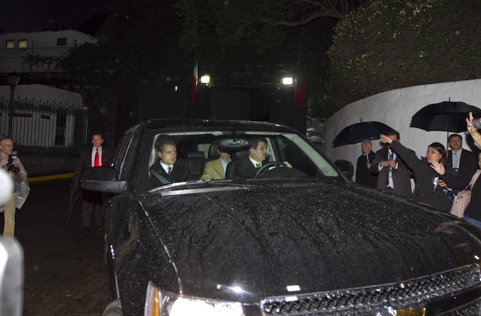 Cerca de las 9:00 de la noche, el priista abandonó la residencia oficial eludiendo los cuestionamientos. La oficina de comunicación de la Presidencia de la República, sólo informó que emitiría un comunicado sobre el encuentro.