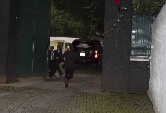 Poco después de las 7:00 de la tarde, Peña Nieto arribó a Los Pinos a bordo de un camioneta Suburban negra, custodiada por otro vehículo con escoltas. Ingresó por la puerta 4, donde lo esperaban reporteros ante quienes evitó hacer declaraciones.