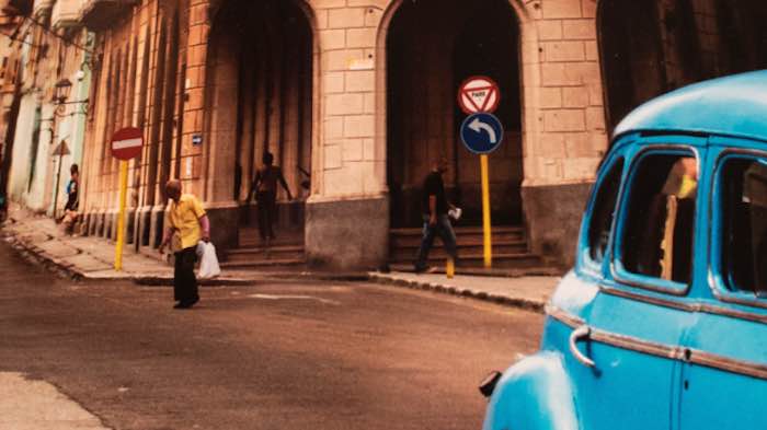 En la imagen publicada por el italiano, se muestra la clonación de un poste en sustitución de la pierna de un transeúnte en calles de La Habana.