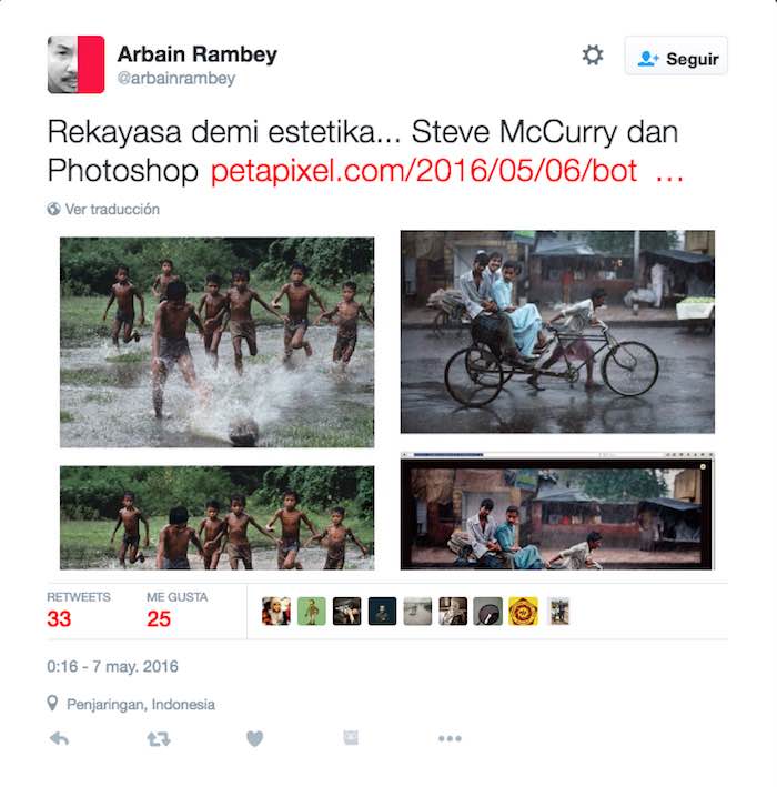"He eliminado mi artículo y lo he reemplazado con otro, porque creo que había sido utilizado para atacar Steve McCurry , mientras que yo no había tenido la intención de atacarlo, sólo quería mostrar, incluso con un poco de diversión , algo 'extraño' que había visto" .