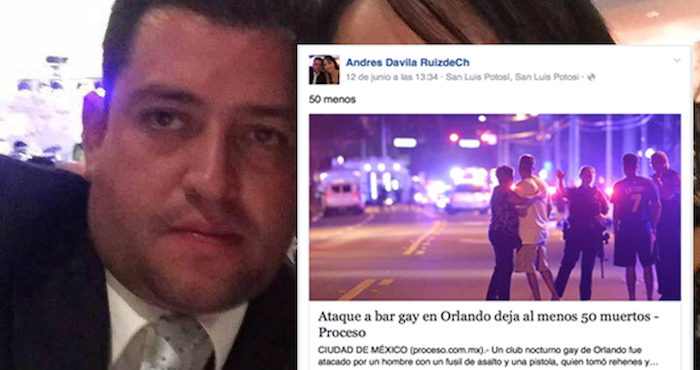 El Secretario de Comunicaciones y Transportes de San Luis Potosí confirmó el cese de Andrés Dávila Ruiz de Chávez, ahora ex director Jurídico de la dependencia, tras publicar en su cuenta de Facebook una nota periodística referente a los asesinatos en el bar gay Pulse con la leyenda "50 menos".