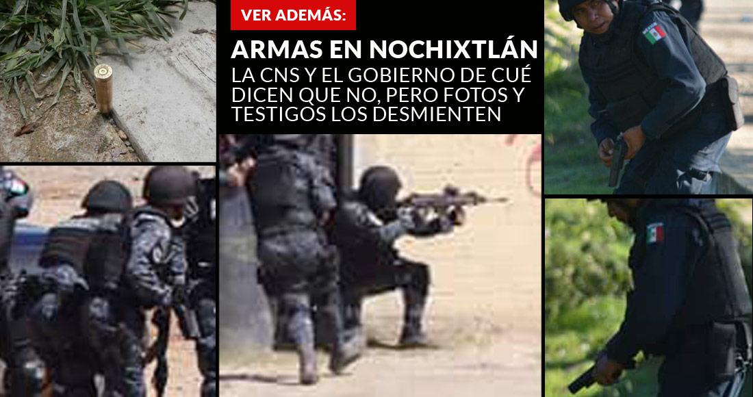 Durante un operativo en Nochixtlán, Oaxaca, elementos de las policías Federal y Estatal utilizaron armas de fuego contra maestros y contra la población civil que se unió al movimiento magisterial. Tanto la Comisión Nacional de Seguridad como la Policía de Gabino Cué dijeron que no hubo armas en manos de los agentes que participaron, pero, ayer mismo, testimonios y fotografías que circularon en redes sociales los contradijeron. Los analistas criticaron la legitimidad que puede tener la Reforma Educativa si se impone con armas automáticas. El Gobierno mexicano parece haber empujado a un nuevo momento, más peligroso, en la confrontación con los disidentes...