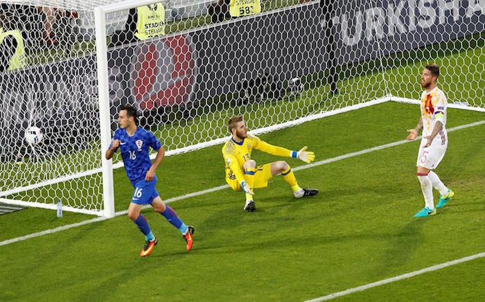 Cinco minutos después, Croacia encadenó dos oportunidades a partir de dos errores individuales españoles. Primero, Sergio Ramos perdió un balón y Kalinic provocó la intervención de David de Gea. Y luego el arquero español perdió un balón en su área y éste acabó en Ivan Rakitic, quien disparó suavemente por encima de De Gea. La pelota recorrió un largo camino que abarcó el larguero, un palo y la línea de gol antes de salir lejos del área española.