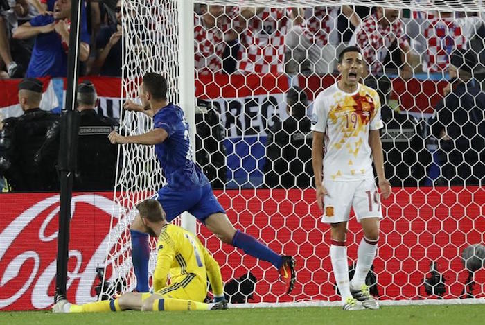 Con un gol de Ivan Perisic a los 87 minutos, Croacia remontó el marcador y venció 2-1 a España y le dio un inesperado vuelco al Grupo D de la Eurocopa.
