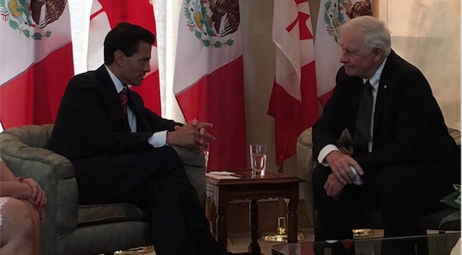 Tras la ceremonia oficial de bienvenida, Johnston y Peña Nieto mantuvieron una reunión en la residencia oficial del Gobernador General en la Citadelle, una fortificación construida por los británicos en el siglo XIX.