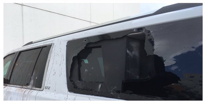 La camioneta en las que viajaban fueron atacadas a pedradas y botellazos, que rompieron los cristales.