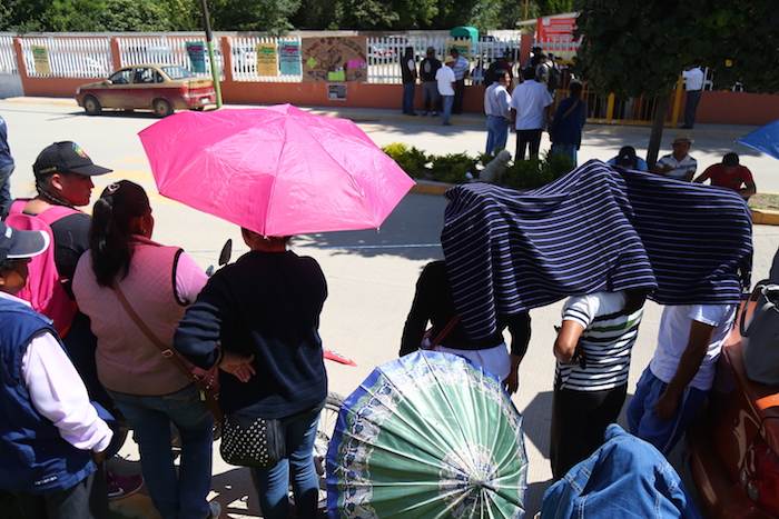 "¡Se ve, se nota, en Nochixtlán no hay derrota!", gritaron los pobladores que soportaron durante todo el día los rayos del sol. Ahí, afuera de la escuela, improvisaron pequeños espacios de sombra con lonas de plástico. Acordonaron el perímetro que quería libre de reporteros, fotógrafos y camarógrafos y lanzaron cohetes durante toda la mañana.