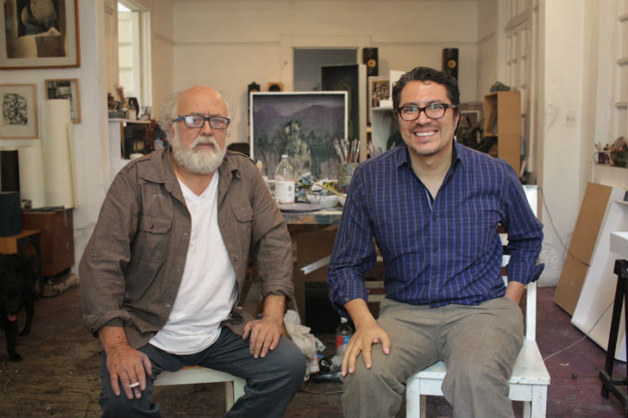 Gabriel Macotela junto a Israel Alvarado, dueño de la Galería Aguafuerte. Foto: Francisco Cañedo, SinEmbargo