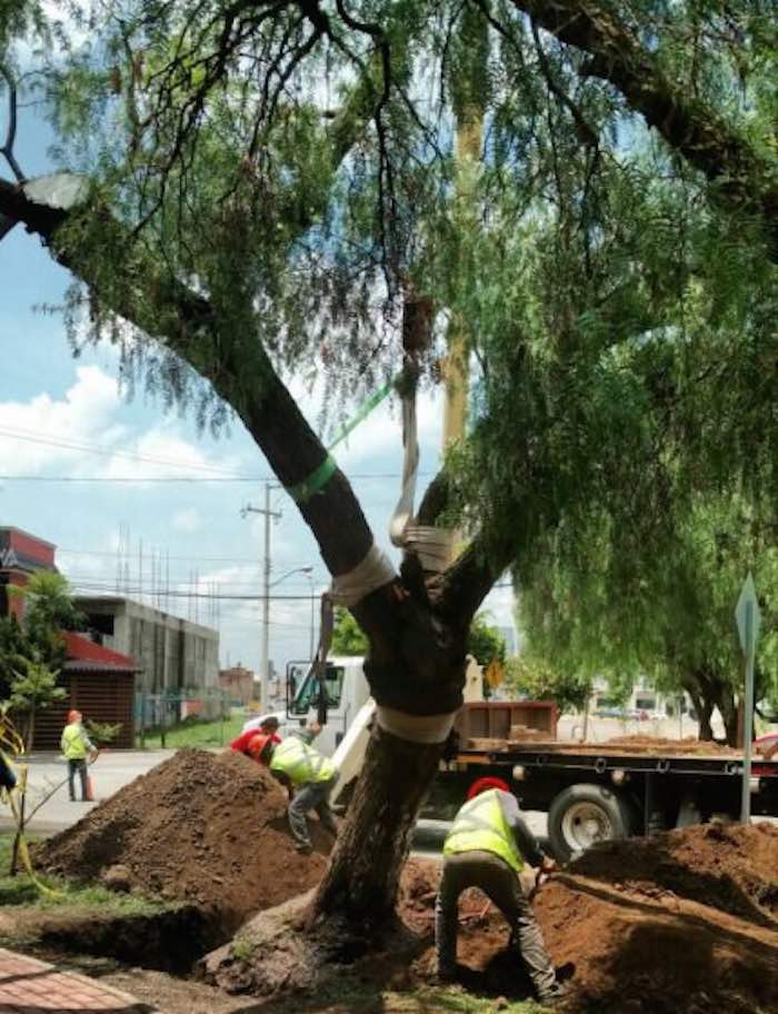 Gracias el esfuerzo y labor de un grupo de activistas, un mezquite de cerca de 90 años de edad fue trasplantado al "parque-camellón" de la Colonia Portales de la Arboleda, en León, Guanajuato. El árbol se había caído debido a las afectaciones causadas por la construcción de una estación de transporte público del Sistema Integrado de Transporte (SIT).